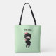 Tote Bag Tiny Ninja Girl Nom personnalisé sur vert