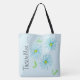 Un grand sac fourre-tout design avec un arrière - plan bleu ciel clair qui peut être changé à votre couleur préférée. Fourre-tout moderne moderne et design floral avec des fleurs. Le texte peut être personnalisé pour vous ou un cadeau personnalisé, ou le texte est amovible.