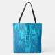 Tote Bag Turquoise Blue Ocean Waves Abstrait Monogramme ini