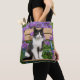 Tote Bag Tuxedo cat sitting on a garchair with flowers