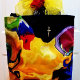 Les couleurs de ce sac fourre-tout me font sourire. Il s'agit d'une image imprimée d'une peinture acrylique avec éclat de jaune, fushia, vert et bleu. Ce porte-monnaie a un arrière - plan noir. Vous êtes également invités à customiser ce sac pour ajouter votre nom.