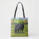 Tote Bag Vache d'Angus noir et veau mou en pâturage d'été