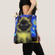 Sac fourre-tout avec un chat siamois dans la peinture de Van Gogh Starry Night! Cette beauté moelleuse pose devant un ciel bleu nuit avec lune brillante et étoiles. Un cadeau intime pour les collectionneurs d'art amoureux de les chats et hollandais !