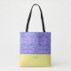 Sac fourre-tout de design en tôle violet, jaune et bleu pouvant être personnalisé. Cela ferait un grand cadeau monogrammé pour un ami ou une demoiselle d'honneur.