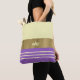 Un élégant jaune et violet avec une bande d'or qui ajoute une ambiance classique à ce sac fourre-tout.