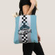 Tote Bag Voiture de course, noir & blanc à damiers bleu