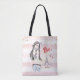 Personnalisé Travel Paris Pink Stripes Sac fourre-tout Sketch avec une fille et la Tour Eiffel. Personnalisez avec votre nom ou celui d'un ami.
