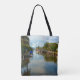 Détendez-vous avec la vue calme et paisible sur ce Sac fourre-tout. Cette photographie originale de ZoeSPEAK est une longue vue d'un canal à Fort Meyers Beach, Estero Island, Floride. À l'extrémité de la voie navigable, près de l'horizon, se trouve le pont vers le continent. Le ciel bleu est rempli de nuages blancs bouffants, d'arbres tropicaux et de bateaux bordent le canal, et un reflet de la belle scène complète cette image de la vie côtière.