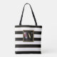 Tote Bag W Monogramme Floral Or | Rayures noires et or