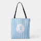 Tote Bag Whimsical Blue White Stripe Preppy Mom Established