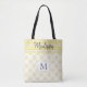 Notre sac fourre-tout monogramme personnalisé est orné d'une bande grise et jaune et d'une impression géométrique et d'un cadre blanc pour votre première impression. Customisez avec votre nom et votre initiale. Découvrez notre gamme complète de produits dans notre boutique Zazzle.
