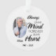 Gardez la mémoire d'un être cher proche de ce magnifique ornement commémoratif qui dit : "Toujours dans mon esprit, pour toujours dans mon coeur." Ce gardien émouvant est parfait pour honorer quelqu'un qui est passé, surtout pendant la saison des fêtes ou à tout moment de l'année. Personnalisez-le avec leur nom, leur naissance et les années qui passent, et une photo pour créer un hommage vraiment significatif. Que ce soit pour vous-même ou comme un don de sympathie réfléchie, cet ornement offre réconfort et un rappel durable de quelqu’un qui est profondément aimé et jamais oublié.