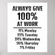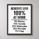 Avec une approche ludique de l'équilibre entre vie professionnelle et vie personnelle, l'affiche "Toujours donner 100%" est le parfait mélange de motivation et d'humour. Idéal comme cadeau ou comme ajout amusant à votre propre espace de travail. Disponible à la fois en version imprimée et en téléchargement instantané.