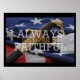 Avec un drapeau américain, l'USMC Saber, et gant blanc dans l'arrière - plan, cette image a les mots "Toujours Fidèle" et "Semper Fi", raccourcis de la devise latine "semper fidelis".