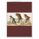 Illustration vintage adorable de deux chats et d'un chiot montant leurs vélos avec des sacs à dos dessus.