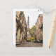Cette carte postale présente une photo de la Tour Eiffel à Paris, vue depuis la rue.