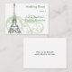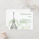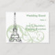 Ces magnifiques cartes de lieux font d'excellents marqueurs de table de réception de mariage afin que vos invités sachent exactement où s'asseoir. Ils font partie de l'ensemble d'invitations et de étiquettes assortis aux parchemins verts frais avec le dessin de la Tour Eiffel.