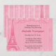 Tour Eiffel Paris Anniversaire Invitations avec tour rose et arrière - plan rose. Idéal pour tous les types de soirées à thème parisien. Customisez avec les détails de votre fête.