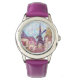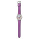 Cette montre à courroie violette présente des oeuvres de Kristie Hubler, inspirées par la Tour Eiffel, Paris, France, et les façades des boutiques d'intérieur de Paris Las Vegas, selon la technique du pointillisme, développée par l'artiste français Georges Seurat, peintre de La Grande Jatte accroché au Metropolitan Museum of Art à New York