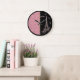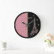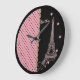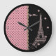 Cette pendule rose et ronde paraîtra bien dans n'importe quelle chambre de votre maison. Elle est agrémentée de la Tour Eiffel et d'un pois rose.
