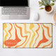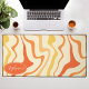 Ajoutez une touche d'énergie rétro à votre espace de travail avec ce tapis de bureau vibrant à motif tourbillonnant groovy. Le design présente un motif abstrait dynamique de lignes ondulées dans des nuances d'orange, de jaune et de crème, capturant une esthétique ludique des années 1970. Une plaque nominative ovale personnalisable dans le coin apporte une touche professionnelle et personnalisée à votre bureau à domicile ou studio créatif. Ce tapis offre une surface lisse pour un déplacement sans effort de la souris tout en protégeant votre bureau de l'usure quotidienne. C'est l'accessoire fonctionnel parfait pour quiconque cherche à combiner le style vintage avec la productivité moderne.