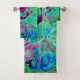 Peinture Super rétro-Abstraite rose et bleu chaud avec des accents vert citron, noir, bleu royal, magenta, jaune et chartreuse. Un design trippy coloré, abstrait, psychédélique que vous aimerez!