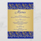 Des feuilles dorées tourbillonnent et rejoignent le coeur sur une carte de menu Mariage arrière - plan bleu royal.