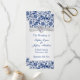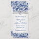 Tourbillons Royal bleu floral motif décoré avec des images imprimées de ruban blanc argent et bijou en forme de coeur de programme de mariage carte en rack.