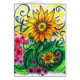 Dessin original d'un tournesol et d'autres fleurs. Créé à l'aide de crayons, marqueurs et stylos.