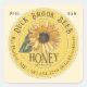 Étiquette jaune carré avec illustration de tournesol vintage. Le mot "miel" est écrit dans une police marron décorative. Ces étiquettes de 1,5 po x 1,5 po peuvent accueillir des ours en plastique de 8 et 12 oz. Commandez en rond ou en carré.