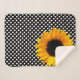 Jolie couverture Sherpa avec un motif à pois noir et blanc, à l'avant, et graphismes d'un grand tournesol jaune, au fond. Customisez d'ajouter votre propre texte. Belle idée cadeau pour elle.