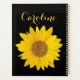 Photo d'un tournesol jaune vif et d'un modèle de prénom sur arrière - plan noir.
