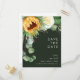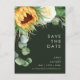 Cette carte postale d'invitation "save the date" au tournesol jaune pays audacieux | vert foncé est parfaite pour votre mariage champêtre simple et classique dans une grange dans votre jardin en été. Le design présente un bouquet de tournesols orange rustiques et jaunes dorés aquarelles vintage, de feuillage de eucalyptus vert sauge moderne élégant, et une rose blanche ivoire. Le design est idéal pour un mariage automnal décontracté en plein air dans un style minimaliste. N'hésitez pas à nous contacter si vous avez des questions concernant le design du produit ; à votre santé !