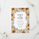 Faire-part de mariage Sunflower Save The Date. Ajoutez une touche de soleil à votre mariage avec ces magnifiques tournesols jaunes aquarelles peints à la main, marguerites blanches et feuilles vert sauge et terracotta. Parfaits pour un mariage romantique rustique d'automne ou un mariage de jardin d'été en plein air, ces annonces de save-the-date bohème chic exceptionnelles donneront le ton pour votre jour spécial. Trouvez des produits coordonnés dans les Faire-part de mariage Rustic Watercolor Sunflower Wedding Invitations.