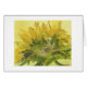 Image d'or sereine de tournesol d'une peinture à l'huile originale. Appropriez-vous pour toutes les occasions - appareillez avec les enveloppes jaunes bronzages, vert-foncé ou molles. Timbres assortis disponibles.