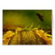 Une carte pour toute occasion. Un gros plan d'un énorme tournesol. Un faucon vole à travers le ciel au-dessus d'une colline. Les tons sont clairs avec une touche de grunge.