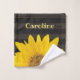 Une photo de gros plan d'un beau tournesol jaune vif avec un modèle pour prénom sur arrière - plan rayé foncé. Personnalisez facilement en modifiant le nom.