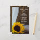 Customize the casual yet classy Rustic Yellow Sunflower and Barn Wood Wedding Menu with the details of the meal that you will serve at your country chic engagement barn party, bridal shower shocheon or marriage reception dinner by adding the salad course, entree or course and dessert 3. This charming custom ranch style menu feobjets a numally painted floral photograph of a yellow sunflower blossom and white bridal veil with a brown barn wood background.
