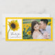 Envoyez des pensées d'appréciation et de gratitude après votre fête d'été ou d'automne, une douche nuptiale ou des nuptiaux avec le joli tournesol sur le Carte photo de Merci Mariage blanc. Cette élégante mariage fleurie personnalisée merci photocard présente une photo florale d'un gros plan d'une fleur de soleil jaune sur la tige dans un vase en verre avec un arrière - plan blanc éclatant.
