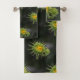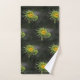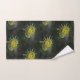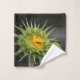 Cette serviette est munie d'un bourgeon de tournesol qui attend d'être ouvert... contre un arrière - plan sombre.