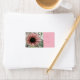 Cette feuille de étiquettes de marque-cadeau collant amusant présente une belle photo d'un tournesol rose pâle. Le tournesol est naturellement rose et les pétales ont un anneau extérieur rose pâle et un anneau intérieur rose plus foncé. Le milieu où les graines sont noires. Cette photo a été prise dans un jardin.