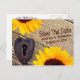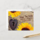 Ce design comprend une photo de tournesol avec un arrière - plan rustique à grains de bois. Une serrure en forme de coeur est installée dans le bois. Personnalisez cette carte postale avec les informations de votre mariage. Cette carte postale fonctionne bien pour le thème tournesol, été, ouest, grange, extérieur, pays, jardin ou automne / mariages d'automne.