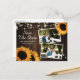 Ces mariages floraux sauvent les cartes postales photo date avec tournesol sur burlap et dentelle coureur contre un arrière - plan en bois de grange sont idéales pour une fête de mariage à thème rustique inspirée des tournesols. Éléments correspondants disponibles.