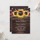 Ce faire-part de mariage rustique bordeaux avec du tournesol contre un burlap bordeaux et un arrière - plan en bois de grange est parfait pour inviter vos invités à votre fête de mariage rustique bordeaux inspiré des tournesols. Facile à personnaliser le modèle.