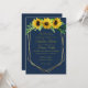 des tournesols à l'aquarelle moderne et romantique avec un arrière - plan bleu marine et un cadre géométrique en faux or.
