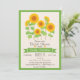 Fleurs de soleil mignonnes et colorées; fleurs jaunes, oranges et vertes, invitation à la douche nuptiale fleurie avec ruban vert et bordure. Customisez cet invitation de douche nuptiale simple, simple et rétro avec la mariée pour le nom et les détails du parti. Grande année pour les douches nuptiales printanières, estivales, automnales ou hivernales.