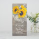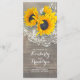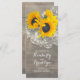 Bouquet de tournesols, pavillon vintage et programmes de mariage rustique en bois