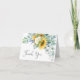Lumineuse et gaie, cette décoration carte de remerciements est ornée d'un bouquet fleuri rustique de tournesols aquarelles, de roses et de baies et fleurs mixtes. . De belles branches d'eucalyptus en vert aquarelle et bleu-vert ajoutent texture et style au bouquet. Cette carte est volontairement laissée vide à l'intérieur pour que vous puissiez soit écrire votre message de remerciement à la main, soit ajouter votre propre texte dactylographié dans l'outil de conception.