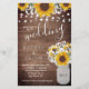 Ce design mariage abordable comprend un vase en bocal de mason rempli de tournesols et de respiration pour bébé sur un arrière - plan en bois rustique avec des lampes à cordes. Cliquez sur le bouton personnaliser pour plus de flexibilité dans la modification du texte. Des variantes de cette conception, différents types de papier, ainsi que des produits de coordination sont disponibles dans notre boutique, zazzle.com/store/doodlelulu. Contactez-nous si vous avez besoin que cette conception s'applique à un produit spécifique pour créer votre propre article de correspondance unique! Merci tellement pour voir un DoodleLulu par 2 june conception de bogues!