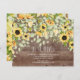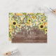 Faire-part fleurie en mouvement avec une belle goutte de tournesol sur un arrière - plan en bois marron rustique avec un dos fleuri assorti.